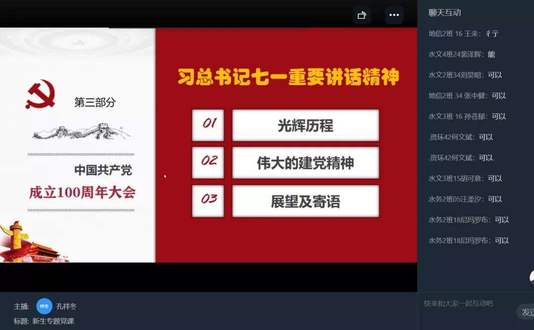 2021年9月28日,成人视频 党委书记孔祥冬在线上为2021级本科新生讲授题为“学党史、强信念”专题党课。